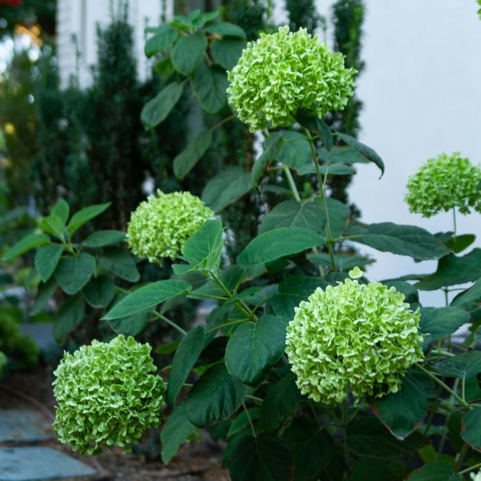 Panicle hydrangeas are famously hardy and sun-tolerant. They won’t wilt in the heat, especially if you plant them on the east side of a structure, allowing them some relief from the hottest afternoon sun. Many growers have their favorite panicle hydrangeas, including Little Lime Punch, Fire Light, Limelight, and BoBo. But there are several new cultivars that are threatening to overtake them in popularity: Bouncy, Bubble Bath, and Spring Sizzle to name a few. Currently, our favorite new variety is Diamond Rouge!